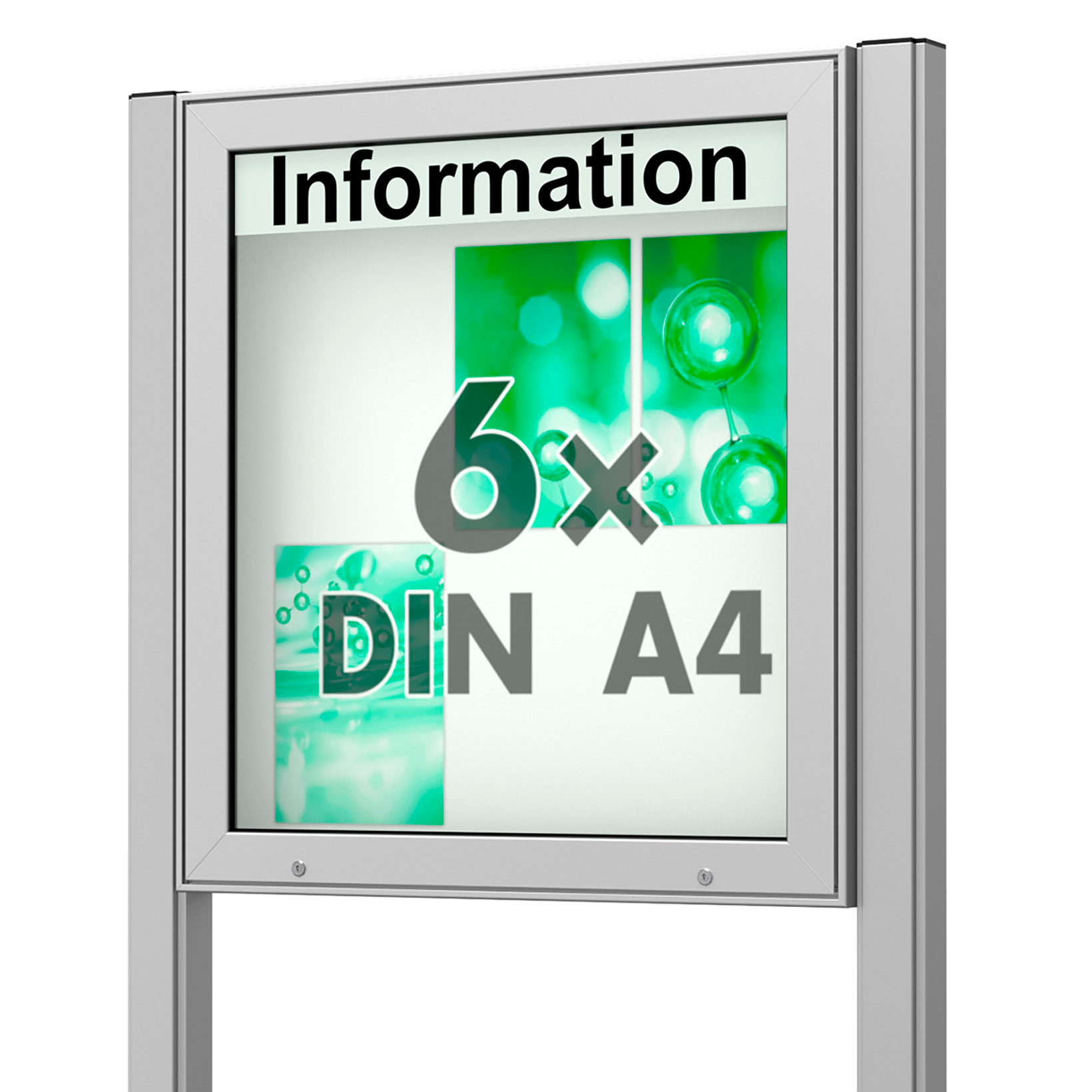 6 x DIN A4 Schaukasten Plenum eckig - der "Klassiker" mit Solar-Modul und Pfosten - Bautiefe 100mm